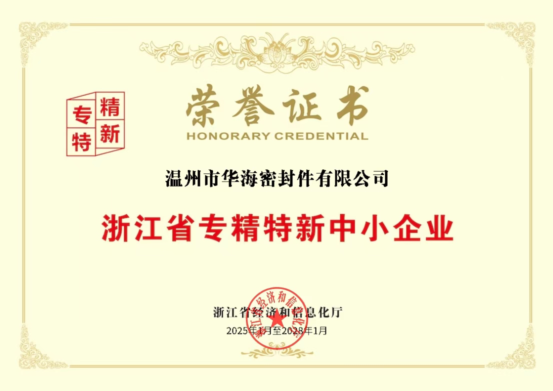 溫州市華海密封件有限公司獲得“浙江省專精特新中小企業”榮譽證書